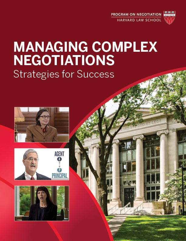 Navigating complex negotiations requires you to manage multiple parties with diverse objectives while continuously solving problems and adapting to new developments. To equip you with the skills to handle these more challenging situations, the experts at the Program on Negotiation have developed Managing Complex Negotiations: Strategies for Success. … LEARN MORE ABOUT THIS PROGRAM