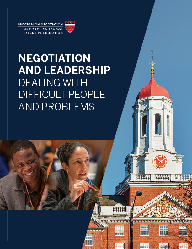 Test your beliefs and assumptions, overcome emotional and rational biases, examine complex negotiation scenarios, and discover a range of competitive and cooperative negotiation strategies. In this acclaimed program, we compress 30 years of groundbreaking research into six thought-provoking sessions. In sessions taught by our expert faculty, you’ll broaden your understanding of negotiating concepts, acquire proven negotiating techniques, and have the opportunity to put your learning into practice. … LEARN MORE ABOUT THIS PROGRAM