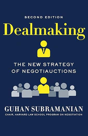 In Dealmaking, Subramanian provides classroom-tested examples of “negotiauctions” as diverse as buying a house, haggling over the rights to the television show Frasier, or selling “toxic” assets into the U.S. government’s bailout fund. With each scenario, he identifies the specific moves that ensure success.
